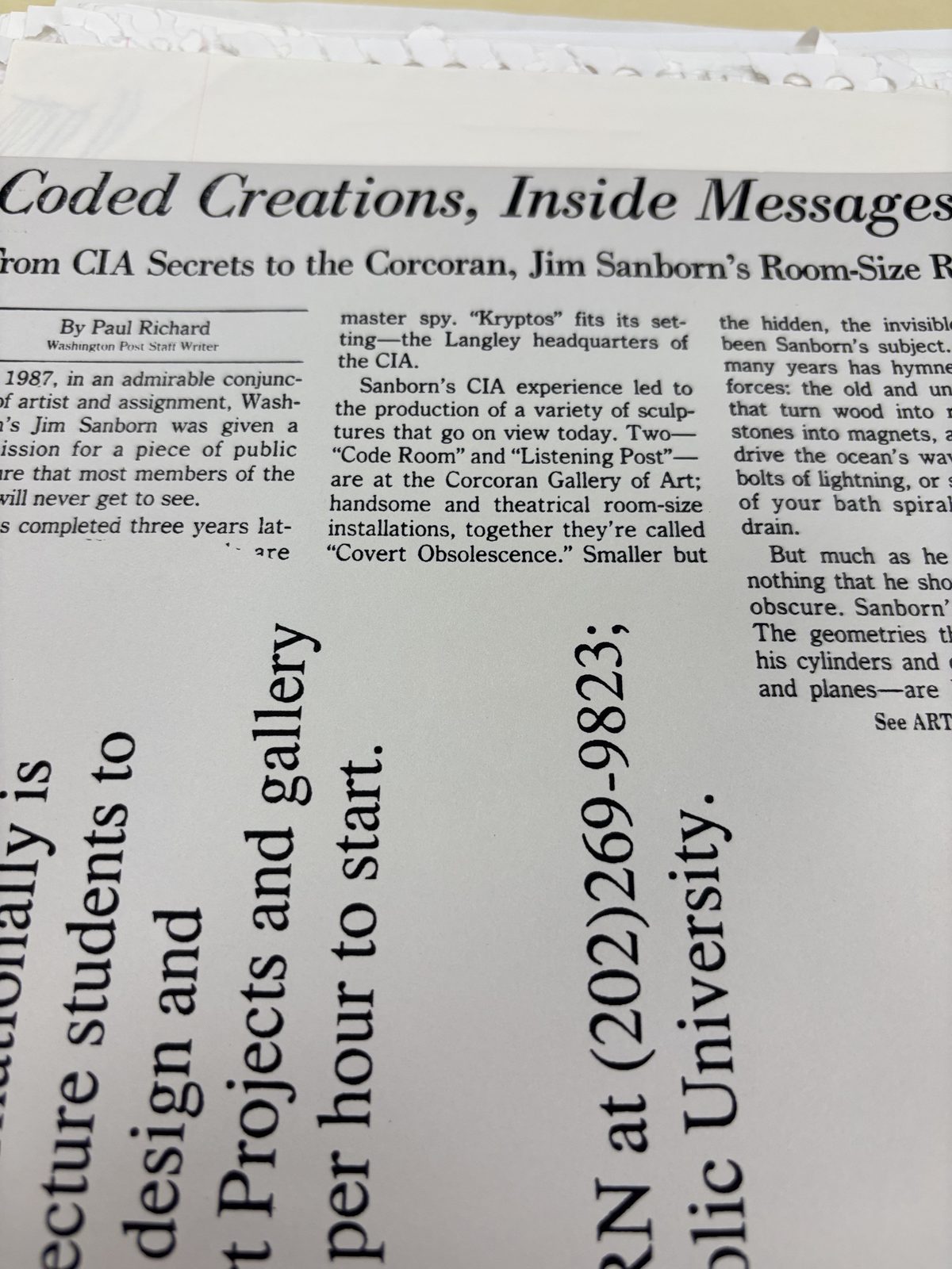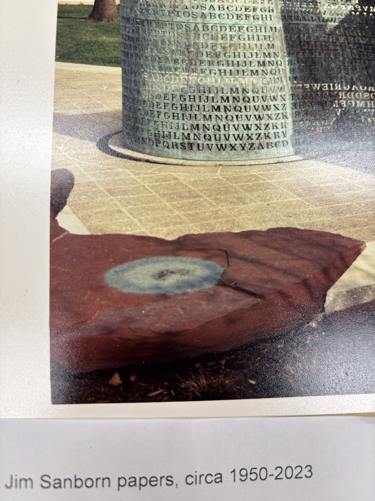 The Jim Sanborn papers are held at the Archives of American Art, a bureau of the Smithsonian Institution. The selection presented here focuses on materials with direct or indirect relevance to Kryptos and its encryption. Many additional pages (business notes, unrelated installation documentation, and near-duplicate photos) were reviewed and excluded to maintain research density.
