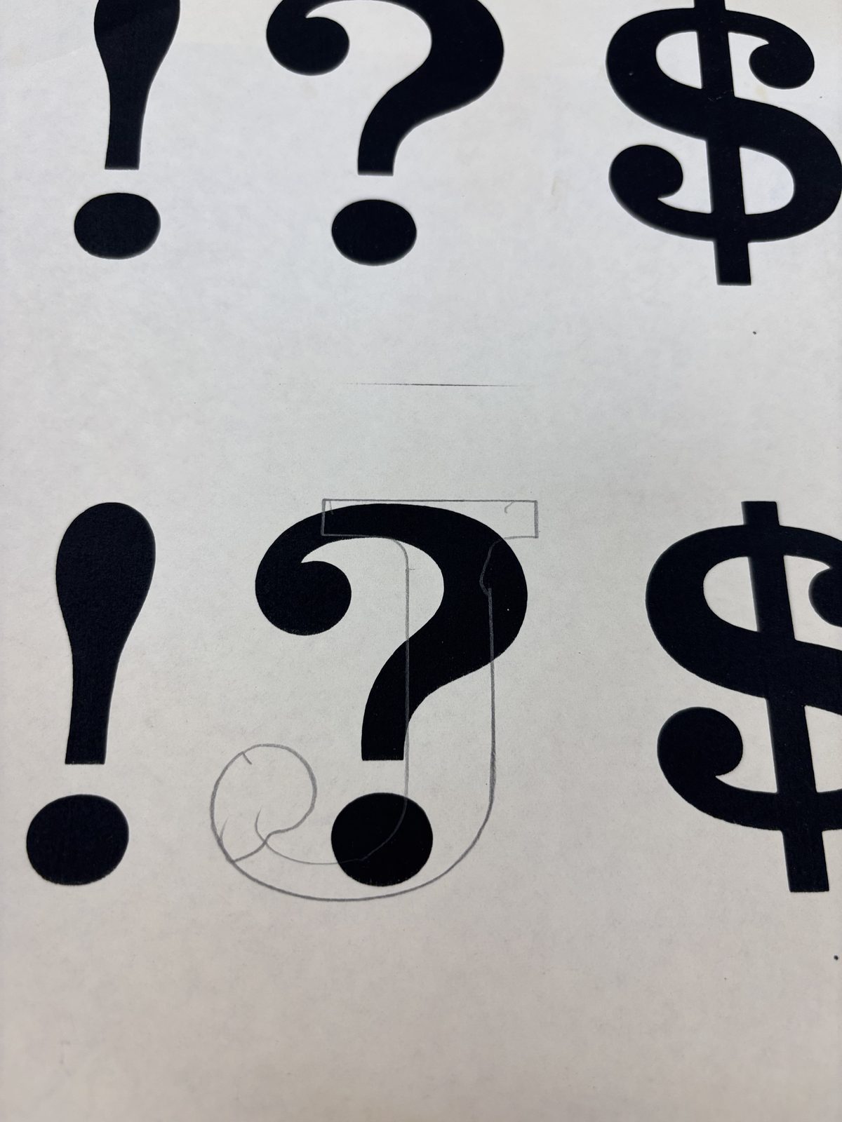 Punctuation Stencil: J Drawn Over ?