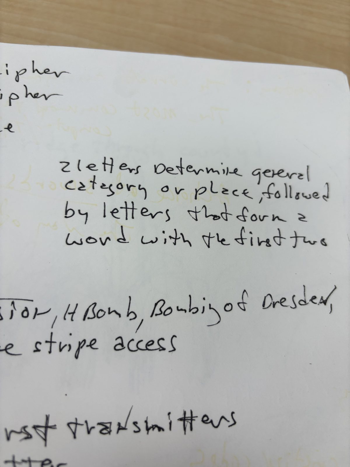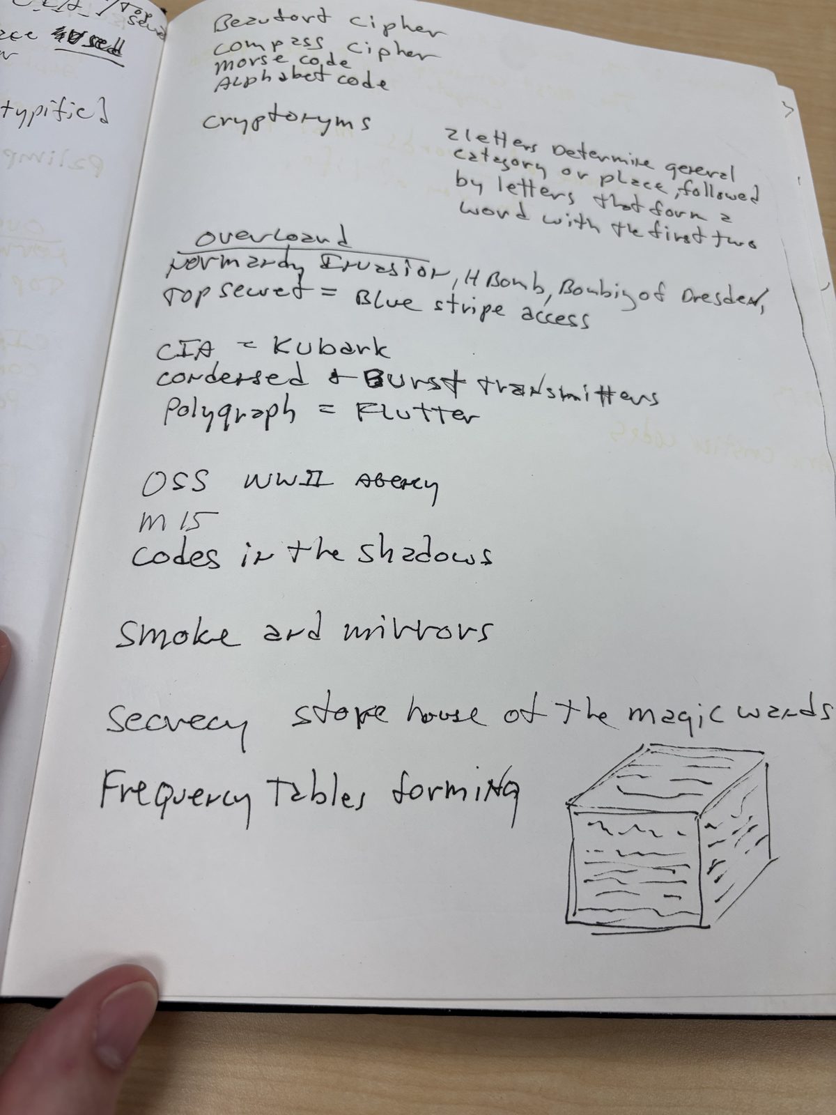 Sanborn's handwritten lists of cipher systems, intelligence terminology, and encoding methods. These reveal what he was taught and what he studied.