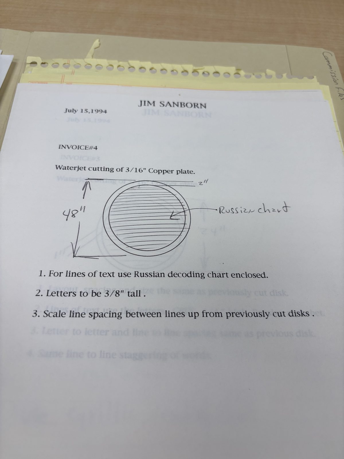 Mirror-Image Waterjet Invoice (July 1994)